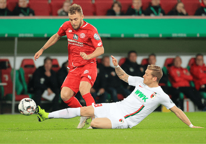 奥格斯堡的战术哲学堪称德甲“务实派”代表:球队以五后卫体系筑起铁桶阵,中场球员通过频繁跑动切断对手传球路线,进攻端则依赖边翼卫的插上助攻和定位球战术。数据显示,其场均被射门次数位列联赛第三少,但反击转化率仅排中游,暴露出前场终结能力不足的短板。本场作客美因茨,奥格斯堡大概率延续防守反击策略,但需警惕对手主场球迷制造的压迫感可能导致的防线失误。