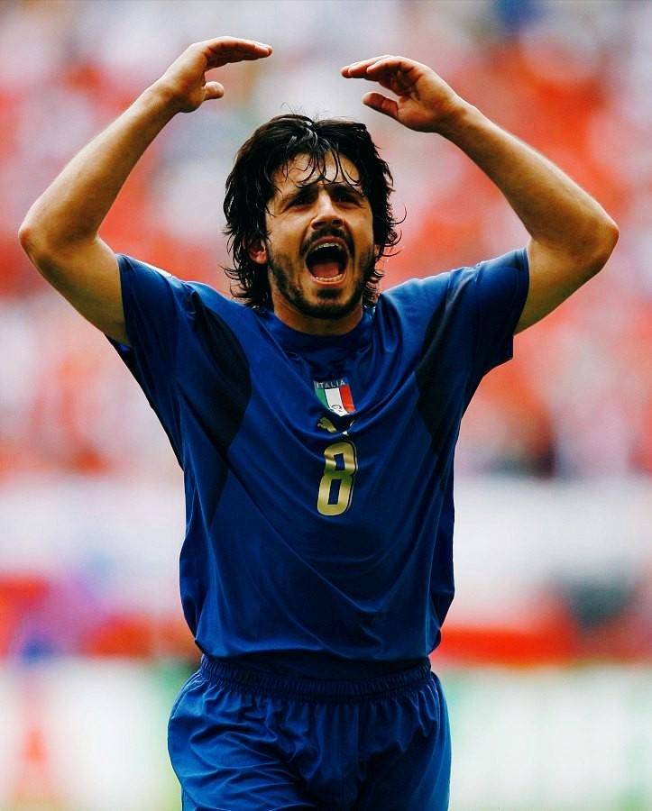 加图索,AC米兰和意大利队的拼命三郎,他的防守虽凶狠却充满智慧,跑动覆盖全场,斗志无与伦比。虽然技术并不如其他球员细腻,但他的拼搏精神与战斗力,让意大利中场稳固如铁。他是球队的“精神领袖”,也是对手的噩梦,助力意大利取得两次欧冠冠军与一次世界杯冠军。